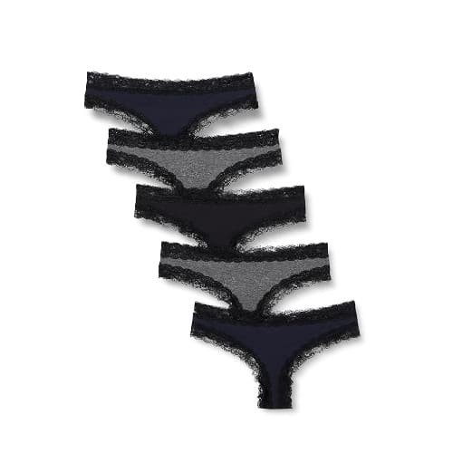 Iris & Lilly Women's Cotton Thong Panty with Lace (5-Pack)